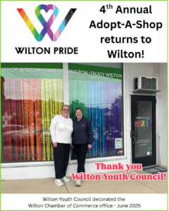 Wilton Pride, in partnership with the Wilton Chamber of Commerce, announces the 4th annual Pride Adopt-A-Shop program. The initiative is designed to showcase support for the LGBTQ+ community in our local businesses, fostering a welcoming and inclusive atmosphere throughout Wilton to celebrate Pride Month in June.