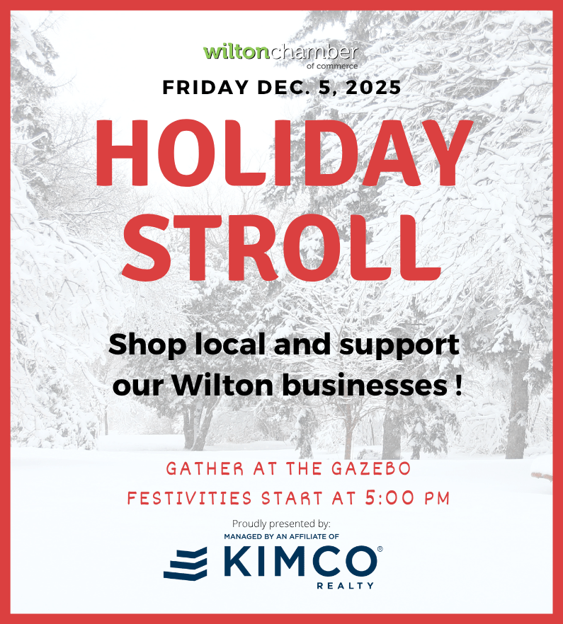 Get ready to ring in the season at the Wilton Chamber of Commerce's Holiday Stroll for a truly magical evening on Friday, December 5th from 5-8pm! The Wilton Chamber, in collaboration with event sponsor Kimco Realty and partners including the Town of Wilton, the Wilton Fire Department, Wilton Volunteer Ambulance Corps, Wilton Kiwanis Club, and…