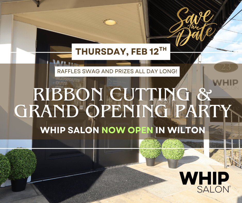 Whip Salon has officially opened its doors at 23 Danbury Road, Wilton, and the team is inviting the community to celebrate their new space! Join us on Thursday, February 12th for a full day of “Whip” style celebration. Festivities Include: 9:00 AM: Ribbon Cutting Ceremony 🎀 All Day: Exclusive Raffles, Premium Swag, and Luxury Prizes for clients…